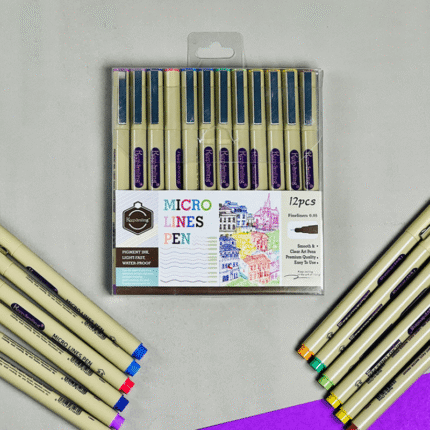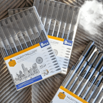 - 9 SIZE MICRO-LINE PENS: 0.05mm,0.1mm,0.2mm,0.3mm,0.4mm,0.5mm,0.6mm,0.8mm, and a brush.