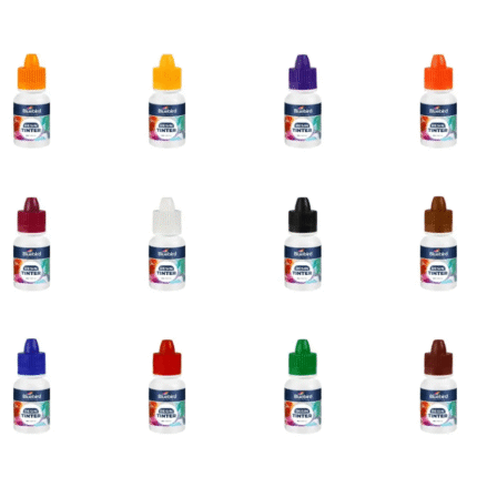 Add fewer drops for a more translucent look or add a few drops of white for opaque hues.