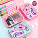 3D EVA Glitter Unicorn Pencil Case Pouch 3 Layer Large Capacity Geometry Box. 3D EVE pencil case. Cute school student stationery box. Kids pencil storage box. Three-layer geometry box. Large capacity pencil case.