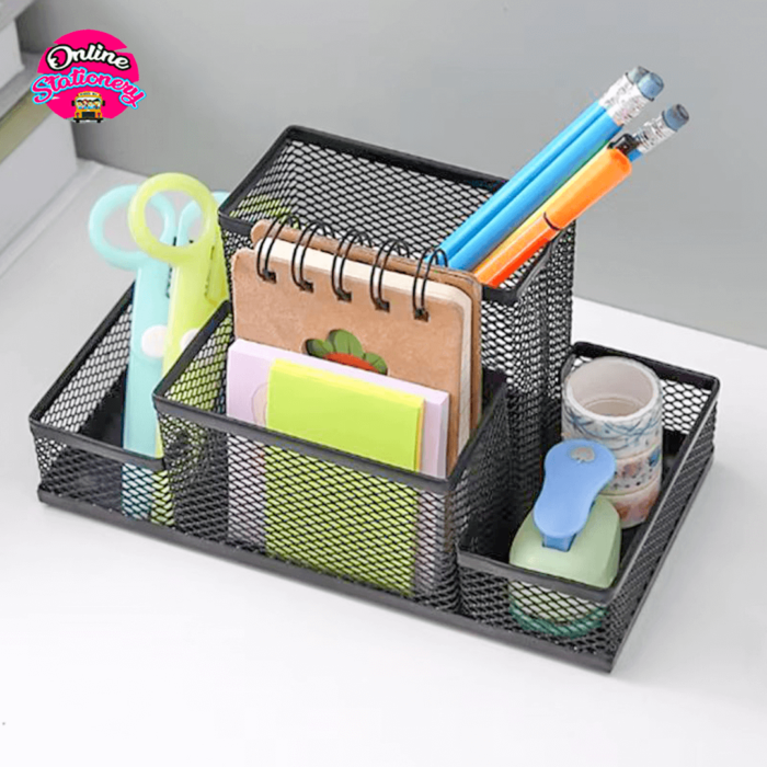 MESH METAL: Made of sturdy metal for longer lasting stationery storage. The mesh design allows you to see what’s in each compartment so you can grab what you need at once.