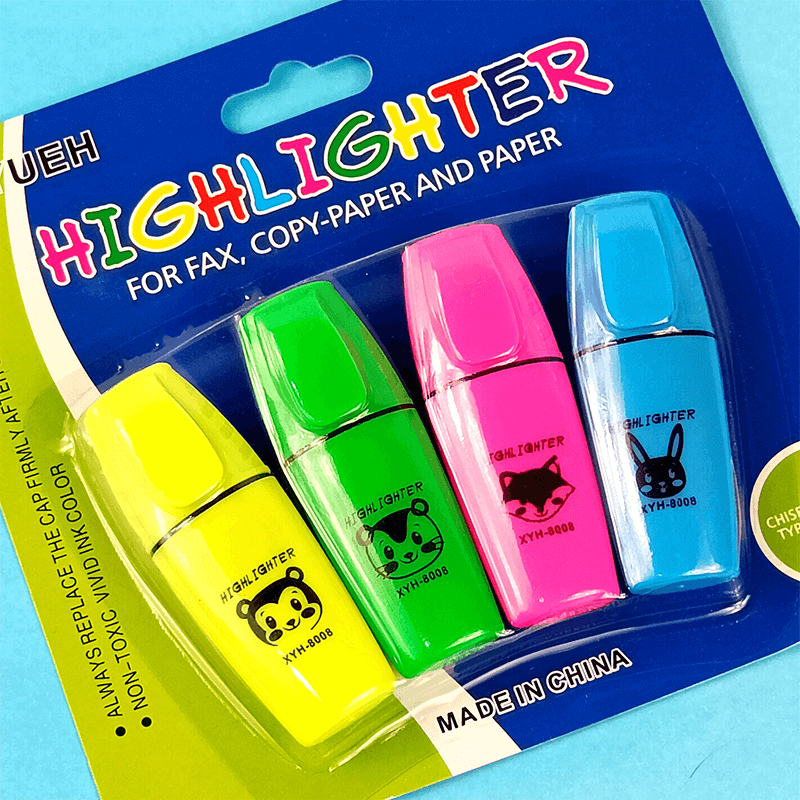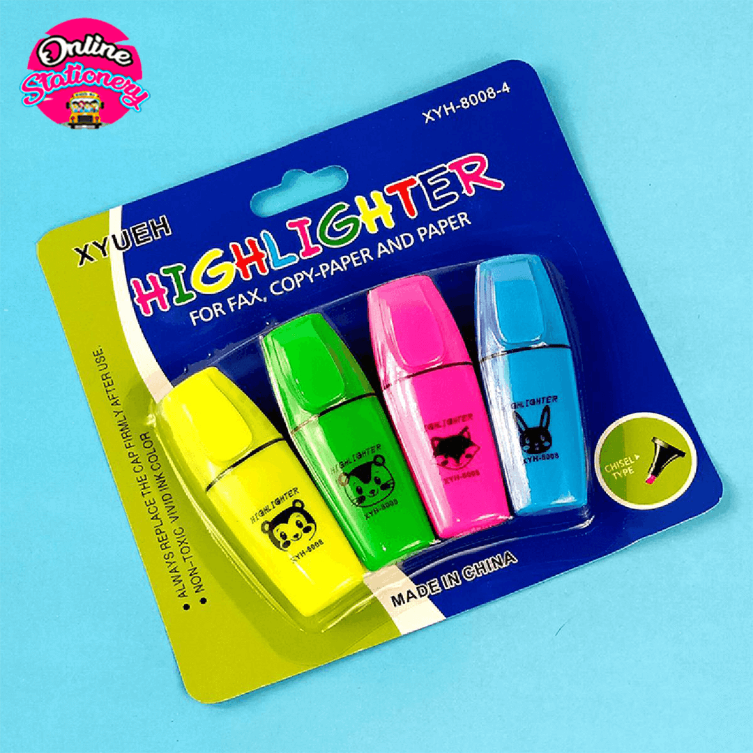 Animal Fluorescent Highlighter Markers Set 4Pcs