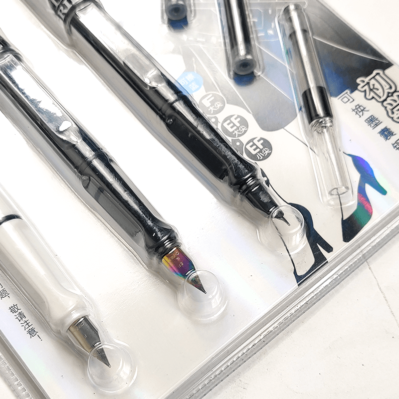 Specifications: 1 EF large-tip refill pen + 1 F large-tip refill pen + 1 EF small-tip refill pen + 1 ink dispenser + 3 replaceable ink sacs.