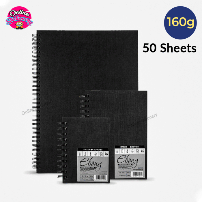 Daler Rowney Ebony Hard Cover Spiral Sketchbooks 50 Sheets, 160Gsm