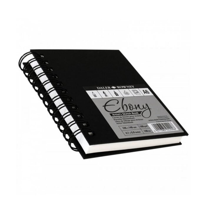 The Daler Rowney Ebony Sketchbooks range features a selection of artists’ black cover hardbound sketchbooks with premium quality, crisp, white cartridge paper suitable for all dry techniques and pen & ink work. Ebony comes in hardback and spiral 150 sketchbooks, in portrait, landscape, and square formats.