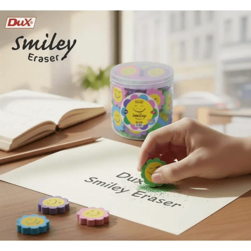 - Dux Smiley Erasers Jar of 48 pieces