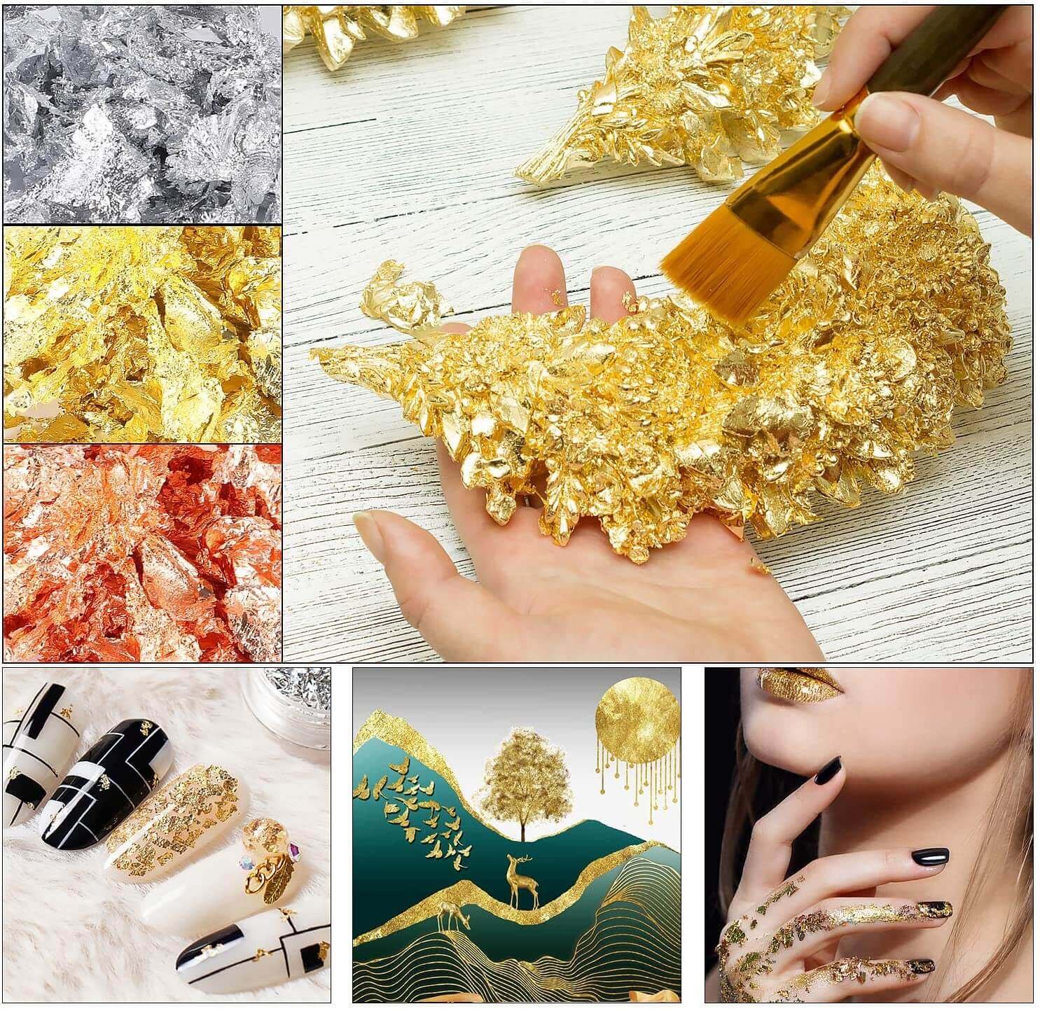 Contains 3 Bottles of Metallic Foil Flakes, Color 2.5 Gold Flakes, Imitation Silver, and 100% Copper Flakes. This set contains 3 bottles, and the net weight of each bottle is 3 grams, a total of 9 grams. Come in gold, silver, and copper colors, the gold foil flakes won’t fade or oxidize easily, they can create a stunning shiny textured effect to make your crafts look special. The gold flakes are perfect for resin jewelry, acrylic painting, nail art, slime making, photo frames, and other craft pastes. These metallic aluminum flakes are, can not be used to decorate cakes, ice cream, cakes, drinks or food.