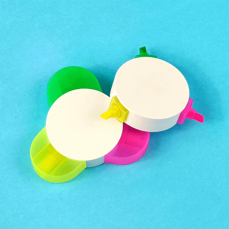 - Available in 6 colors: Yellow, Orange, Pink, Green, Purple, Blue.