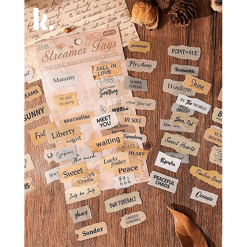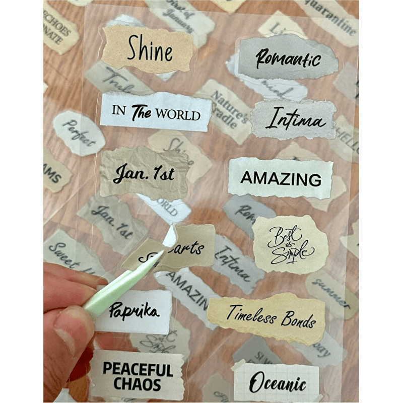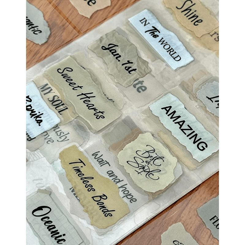 Specially designed for those who love vintage style, this Retro Text Themed Transparent Sticker Set creates a nostalgic touch in notebook decorations, bullet journal works, album designs, and handmade cards.