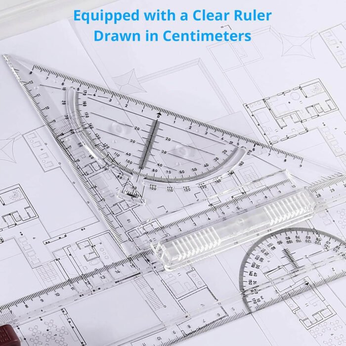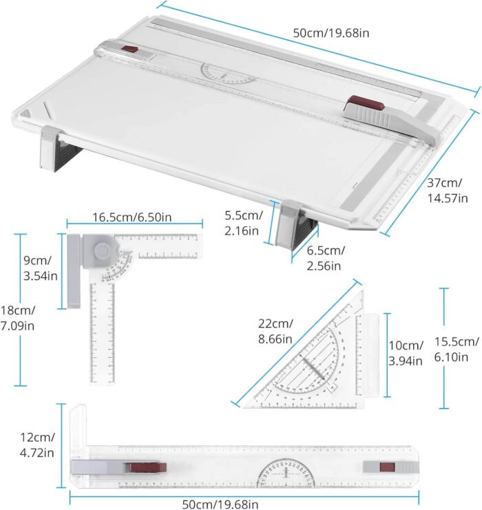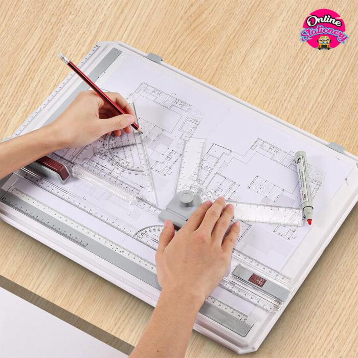 A3 Drawing Board – This is a complete A3 drawing tool set with a parallel motion that slides into a slot. Made of high-quality plastic, lightweight and durable, ergonomic design. Size: 50cm x 14.5cm x 2.4in
