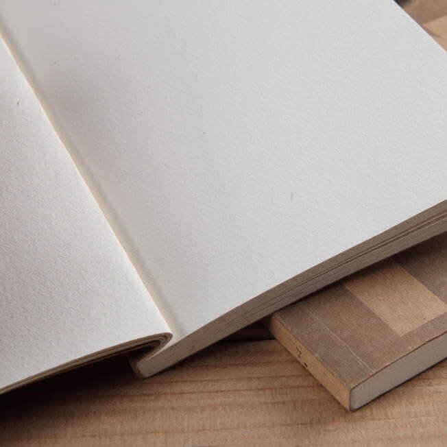 Sketchbook Potentate features yellowish-white Canson paper, a very lightly textured hot-pressed drawing paper suitable for drawing with colored pencils, charcoal, sketching pencils, pens, and oil wax. When using watercolor, you can overlap 3-6 layers of water. Paper with a slightly yellow color is very popular with art students and artists for drawing portraits, paintings, and sketches.