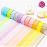 Cute Scrapbooking Solid Color Washi Tape Set (10 Pcs.) High-quality multi-shade washi tape set. Tape Type: Masking Tape. Material: Paper. Quantity: 12 Pcs. Size: 15 x 2MM. China Made. Easy to use.