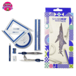 The Shark Geometry Set of 9 Pcs is a complete mathematics and drawing kit designed for students and professionals. It includes a compass, divider, protractor, set squares, ruler, pencil, eraser, and sharpener – all neatly packed in a durable case. Ideal for geometry, technical drawing, and classroom use, this set ensures accuracy, durability, and convenience.