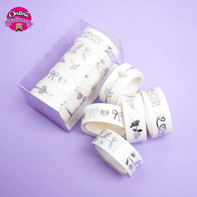 Cute Silver Foiled Bow Washi Tape Set of 5 pcs. High-Quality Multi-Color Washi Tape Set. Tape Type: Masking Tape. Quantity: 5 Pcs. Easy to use. Made In China. Material: tape. Type: Washi tape. Size: 1.5cm * 2m x 5 pcs. Made in China.