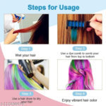How to use: step: 1. Make hair a little bit wet and comb the hair with the hair chalk comb. 2. Seal the kids temporary hair color and dry the hair with a hairdryer or fan. 3. Finalize your hair with gel or hairspray. The girls hair chalk is normal to be a little sticky. Better to dry with the hair dryer.